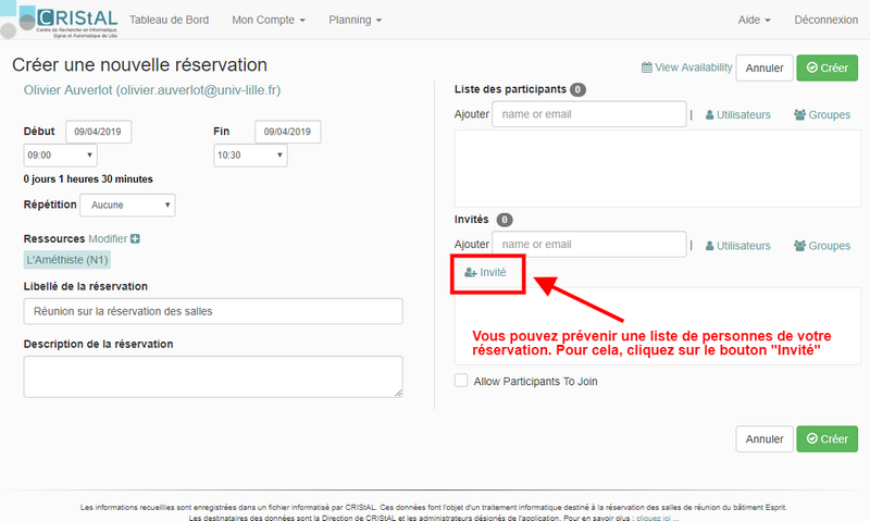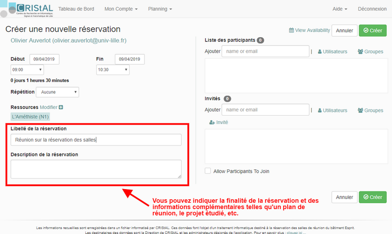 Ce document présente les étapes essentielles pour réserver une salle dans le bâtiment Esprit à l’aide de l’application disponible à l’adresse suivante : https://salles.cristal.univ-lille.fr