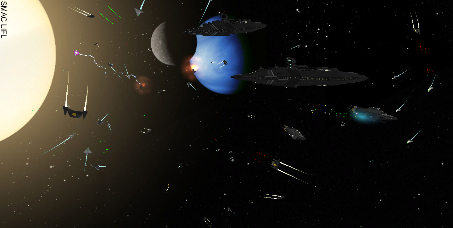 Black cruisers send fighters in order to defeat the adverse fleet. | |