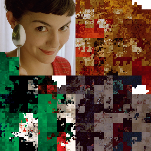Si vous lui appliquez la transformation de Hilbert -67000 fois, vous découvrez le dessin 2. Si ensuite vous appliquez encore Hilbert -67000 fois vous verrez cette fois le dessin 3. Puis en recommençant, vous tomberez sur les dessins 4 et enfin 5.